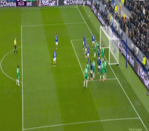 第69分钟,扳回一城,迪尤斯伯里-霍尔停球推射破门,埃弗顿1-4