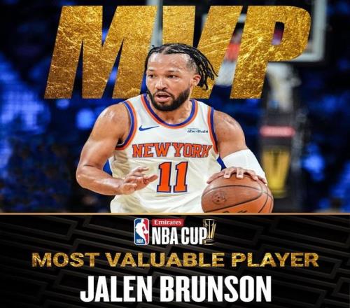 在击败马刺的这一战,尼克斯八大战将都有出色的表现。阿努诺比贡献28分9篮板3助攻。唐斯得到16分11篮板。哈特得到11分8篮板3助攻。布里奇斯得到11分5篮板5助攻。米切尔·罗宾逊得到4分15篮板2助攻2盖帽。克拉克森得到15分。科莱克得到14分5篮板5助攻。毫无疑问,尼克斯仍然是东部战力最强的球队之一。布伦森成为历史上第三位NBA杯赛MVP,前两位是字母哥和詹姆斯。
