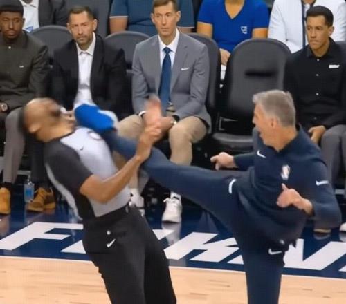 这是一段勇士主帅科尔暴揍裁判的视频。