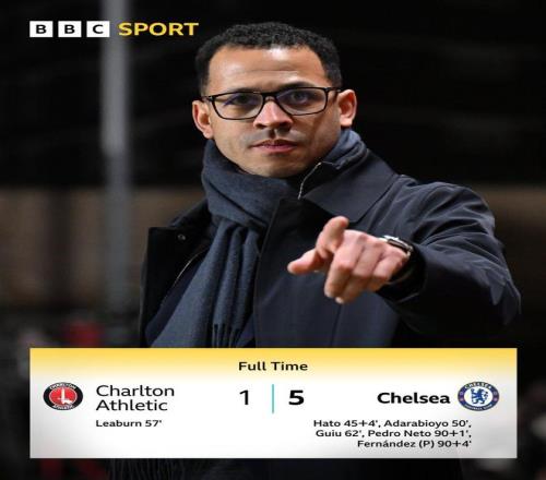 切尔西在第62分钟再次进球。博纳诺特远射被扑出,吉乌抓住机会补射破门。此后切尔西陆续进行换人调整,先是派上埃斯特旺,随后派出了恩佐-费尔南德斯和德拉普。补时阶段,切尔西连进2球。内托和恩佐-费尔南德斯各进一球,杀死比赛。最终的比分定格为5-1,切尔西淘汰查尔顿。